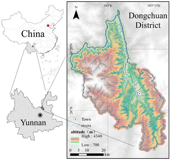 In this study, we selected Dongchuan District of Kunming, a typical mountainous county in northeastern Yunnan, China, as our case study area. Under the VS perspective, the two core issues mentioned above were both considered to evaluate the water accessibility of VSs, enhancing the rationality and effectiveness of rural water planning in mountainous areas through sustainable practices.