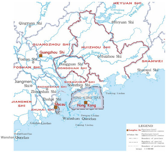 - Guangdong Provincial Development and Reform Commission. Overall Development Plan of Guangdong Development Zone; Guangdong Provincial Development and Reform Commission: Guangzhou, China, 2020. [Google Scholar]