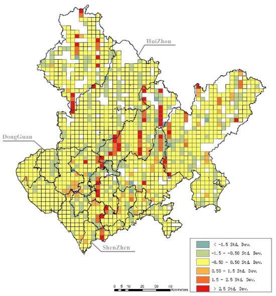 Standard error results at the grid level. Note: The boundary lines of cities and districts are schematic.