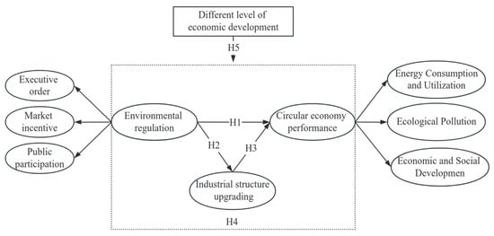 Therefore, under the predicament of economic growth facing enormous environmental challenges, the policies of environmental regulation have been continuously enriched. In this context, it is worth exploring whether environmental regulation has a promoting effect on the performance of the circular economy, as well as the specific mechanism that determines how environmental regulation impacts circular economy performance; it is of great significance in order to realize the compatibility between the protection of environmental interests and the high-quality green development of the economy, as well as to satisfy the people’s demand for a better living environment, and so on.