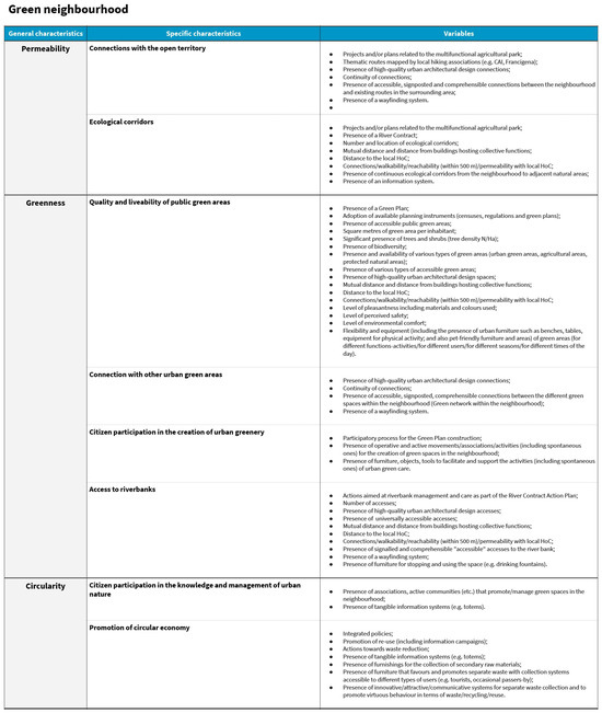 Green neighbourhood categories and variables.