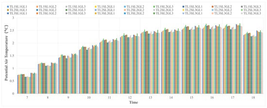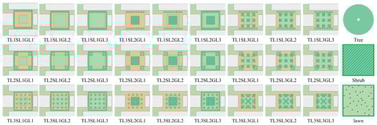- The comparison of different plant layout combinations highlighted the significant interaction among trees, shrubs, and grasses in regulating microclimate capacity. In particular, combinations such as TL × SL and SL × GL show significantly excellent cooling and humidifying efficiencies compared to individual layouts, underscoring the importance of synergistic effects.