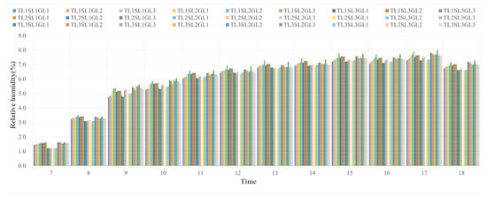 3.2. Influence of Different Plant Element Layouts on Humidity