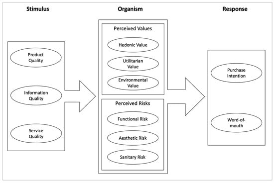 The expansion of the second-hand market necessitates further scholarly research to understand the driving forces behind this phenomenon and to study the consumption patterns associated with second-hand clothing comprehensively. Therefore, the purpose of this research is to explore the impact of external factors such as product quality, information quality, and service quality on the emotional states of consumers and how consumers’ perceived values and risks influence their purchase intentions and their likelihood to recommend products through word of mouth (WOM). Specifically, the objectives of this study are as follows: (1) to investigate the rise in second-hand clothing consumption among U.S. consumers; (2) to enhance comprehension of the Stimulus–Organism–Response (S-O-R) framework by identifying the specific stimuli and organisms within the context of second-hand consumption, as the model examines how external stimuli (e.g., product quality, information quality, and service quality) affect consumers’ internal organism (e.g., hedonic value, utilitarian value, environmental value, functional risk, aesthetic risk, and sanitary risk), which in turn shapes their behavioral responses (e.g., purchasing intentions and word of mouth); (3) to test the proposed model through an analysis of data obtained from an online survey of U.S. consumers; and (4) to provide insightful recommendations for second-hand retailers and marketers. By understanding these dynamics, these entities can more effectively cater to their consumers’ needs and preferences.