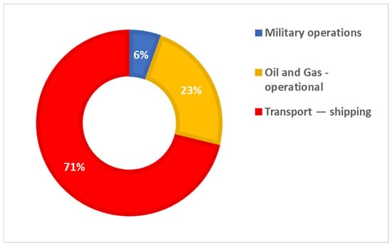 Scenario development—percentage of IR grand total by sectors at the Romanian Black Sea.