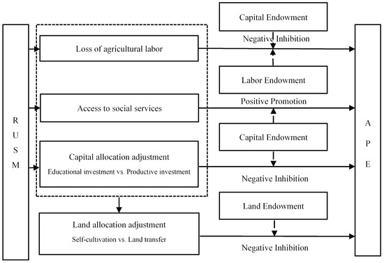 RUSM affects the LRAE in rural households by changing their labor distribution and occupational choices, and it affects APE through the reallocation of labor, capital, and land resources.