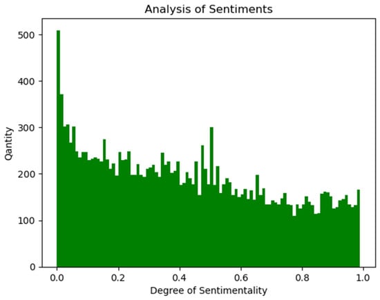 The distribution of the sentiment analysis results is shown in Figure 1. It can be seen that the public’s comments on SAVs are more widely distributed below 0.5. It shows that based on the text analysis of the comments on the TikTok platform, the public currently had a poorer evaluation of SAVs, and there were more negative sentiment evaluations, indicating that the public had a more negative attitude towards SAVs.