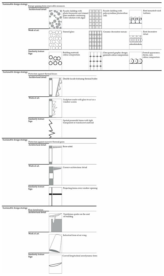 Energy-related strategies, functions, and technical solutions for architectural details and their formal associations with artworks. Source: Authors’ archive.
