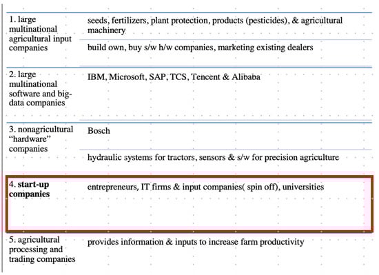 Agritech suppliers. By authors, from source: [27]. Red box denotes that the study focuses on the category of 4.start-up companies.