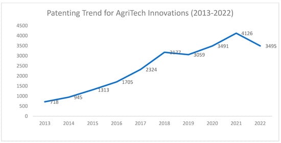 Technological innovation plays a vital role in transforming every economic sector. Amongst various sectors, agriculture has not kept pace with innovation and is the least digitized sector [2]. The growing demand for technological innovation in the agricultural sector is due to a multi-faceted problem, such as the rapidly growing global population, impacts of climate change, labor shortages, evolving consumer demand, food waste, farm efficiency and profitability, opaque supply chains, distribution inefficiencies, food safety and traceability, restrictions in the utilization of natural resources, and increasing health problems. It is anticipated that agrifood tech could be a solution to many of these problems [3].