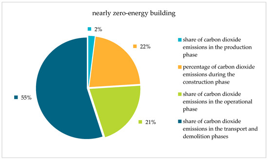 According to published data, the total carbon emissions of the different periods and processes of the building sector in 2020 were around 5.08 billion tonnes of CO2, accounting for 50.9% of the national carbon emissions in China. In this regard, Figure 1 presents the carbon emissions resulting from each of the building stages, highlighting that the carbon emissions from the operation stage account for 21% of the total in China. On this basis, it is crucial to reduce the carbon emissions from the building operation stage, as a key milestone towards achieving the goal of near-zero energy consumption [9,10].