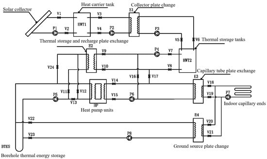 Overall, there exist nine kinds of circuits in the considered solar–ground-source heat pump heating system in this study. The different circulation loops are presented in Table 1.