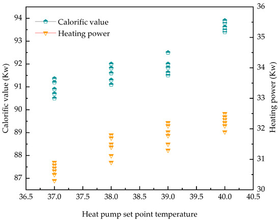 Variation in the heat pump unit’s heating power and heat production with the changes in its setpoint temperature.