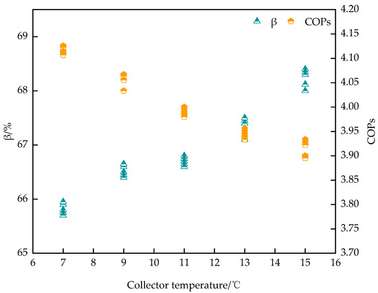 The coefficient of performance of the hybrid solar–ground-source heat pump system COPS is given in Equation (4).