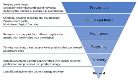 The waste management hierarchy. Reprinted with permission from Ref. [], 2022, MDPI.