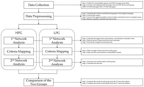 Moreover, this study conducted network analysis using keywords from CEO messages and criteria mapping. The study procedure involved six stages (Figure 1).