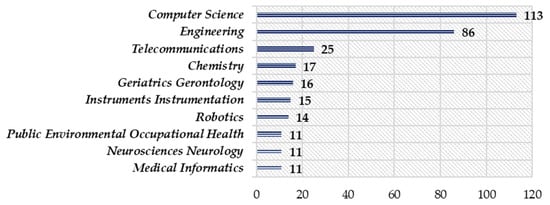 Top 10 resulted Web of Science research areas and the number of included scientific publications. Source: Illustrated by the authors based on data obtained after querying the Web of Science database.