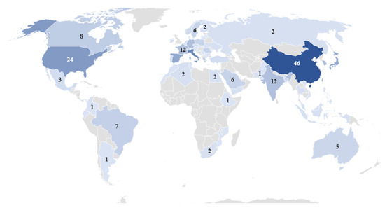 The broad representation of countries across different continents indicates that the topic has garnered global interest (Figure 5). Researchers from various regions are actively contributing to the research and development within this field. China stands out with the highest number of publications, suggesting a significant focus on the topic within the Chinese research community. This could be indicative of substantial investment, collaboration, or expertise in the subject. European countries like Italy, Spain, England, France, Germany, and others are well represented in the publication counts. This demonstrates the strong presence of the topic in the European research landscape. The presence of countries from Asia, Europe, North America, and other regions highlights the interdisciplinary and cross-continental nature of the topic. Undoubtedly, the diversity suggests that the topic has implications across various cultural, economic, and social contexts.