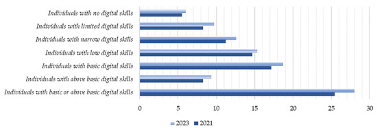 - Eurostat. Individuals’ Level of Digital Skills (from 2021 Onwards). Available online: https://ec.europa.eu/eurostat/databrowser/product/page/ISOC_SK_DSKL_I21 (accessed on 22 January 2024).