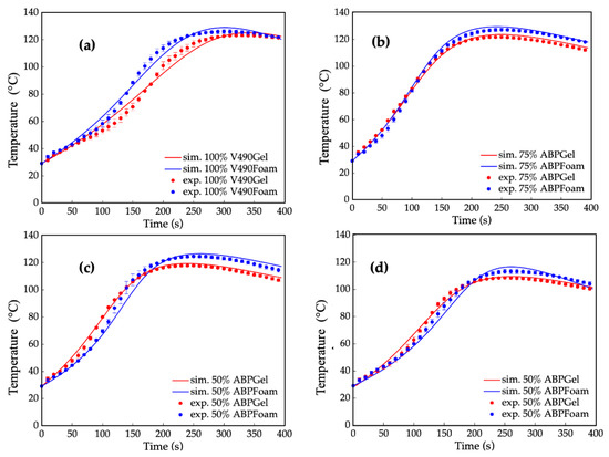 Computational simulations based on heat transfer and reaction kinetics differential equations have been performed on polyurethane foaming processes based on Baser and Kakhar’s models, which employ thermal energy balance and polyurethane reaction kinetics [45]. Zhao et al. (2013) modeled and simulated the temperature profiles during the rigid polyurethane foaming process of hydroxyl-based single and multi-polyol mixture polyurethane formulation systems [46]. Al-Moameri et al. (2015) used the same approach in simulating the effects of different physical blowing agents on the polymerization temperature and height profiles during the polymerization process, with the consideration of parameters based on the type of alcohol moieties present in the polyol [47]. The aforementioned kinetic simulations and modeling utilized only the reaction between hydroxyls and isocyanate for the prepolymerization processes. Considering this, modeling all possible exothermic polymerization kinetics using diverse polyol systems such as amine moieties has been largely unexplored.