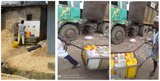 44]. People pay a water vendor to fill their tanks and buckets. Sometimes, the water is supplied by a water system constructed by the residents. Households, mostly women and girls, have to queue for longer hours for water. A respondent in a focus group in Ekurinum said: