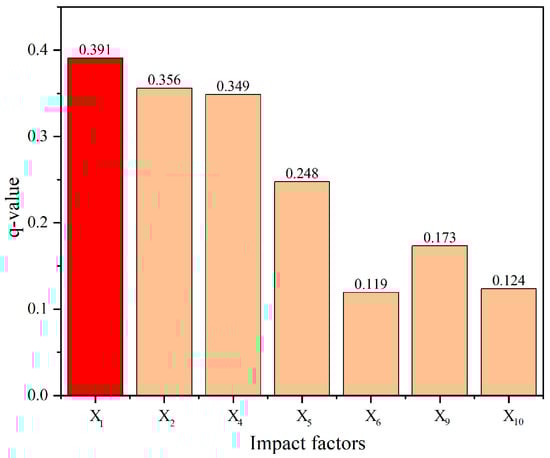 By using OPGD to conduct single factor-driven detection of urban vulnerability in the Chengdu-Chongqing Area to identify its explanatory power, we find that the significance of each factor corresponds to the q-value as follows (Table 4). After removing the factors with insufficient significance, the explanatory power of the remaining factors is as follows (Figure 6):