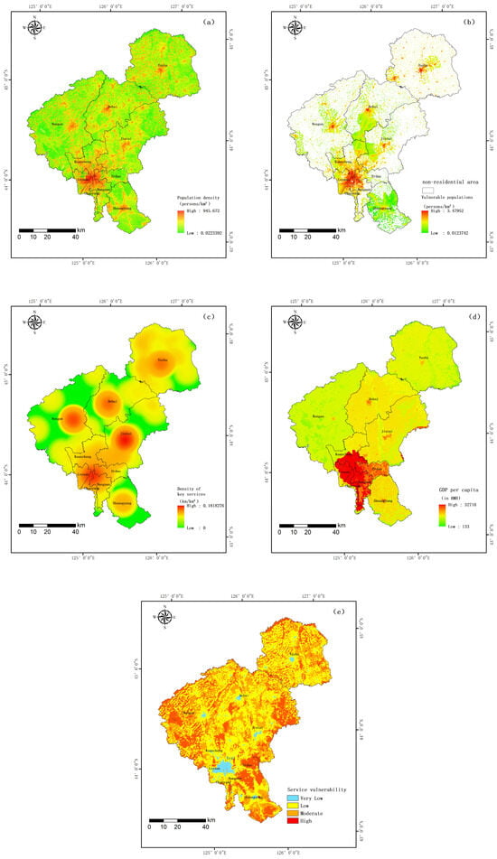 (e) Public transportation coverage: The extent of public transportation coverage is a key indicator for assessing the ability of cities to ensure the continued mobility of their inhabitants during extreme events []. An extensive public transportation network is essential for the effective evacuation of individuals and the transportation of emergency supplies in emergency situations.