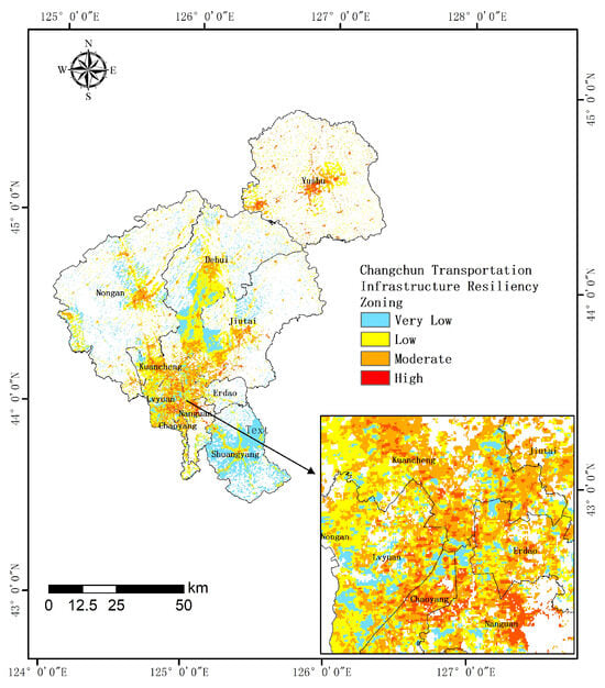 4.1. Transportation Infrastructure Resilience Zoning in Changchun City and Its Analysis