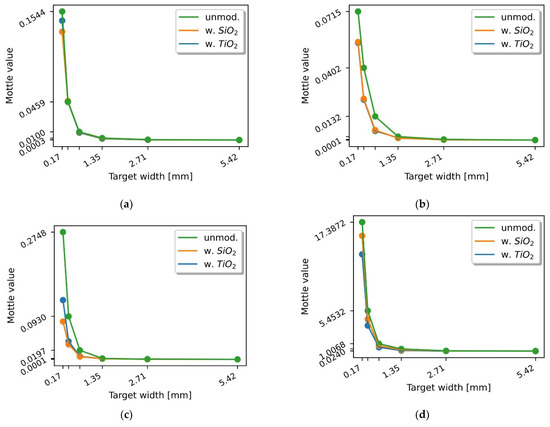 Indeed, the values recorded for paper PC 120 are orders of magnitude greater than the values recorded for other papers, which is reflected in the results for the mottling values shown in the continuation, which could be related to the lowest SFE of that paper. Low SFE values of the surface can result in the poor wetting of the printing ink and consequently increased mottling since the wetting of a liquid onto a substrate is essential for the spreading of the liquid on the substrate [64].