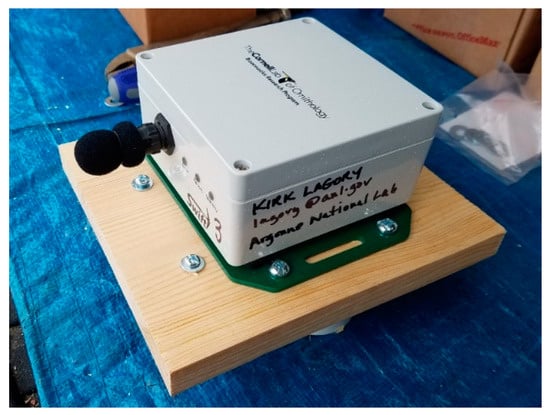 Swift sound recorder on wood mounting plate ready for deployment at the Brighton site.
