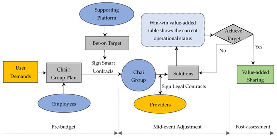Employees who identify user scenario demands can initiate a chain group plan. Micro-enterprises or employees intending to join the chain group can submit applications. After both parties reach a cooperative intention through mutual selection, they sign a smart contract. This is a multi-party betting contract based on blockchain technology, stipulating the common goals of the chain group and the tasks of each party. The sharing value of the chain group comes from users. If the services provided by the chain group result in added value for users, the chain group can obtain corresponding profit sharing according to the agreement of the smart contract. Then, the chain group can continue to meet the needs of other users, achieving sustainable development and growth. Otherwise, the chain group may face dissolution due to difficulties in bearing the risks and losses. This salary mechanism drives employees at all nodes, such as research and development, production, sales, and after-sales within the chain group, to cooperate closely and to attract resource providers to realize the value of users.