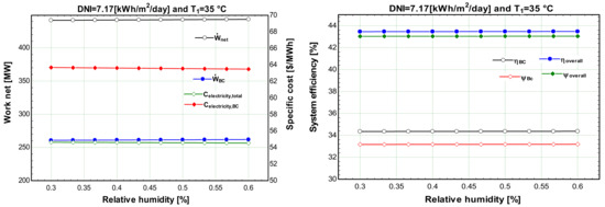 As a result, the net powers of the BC, RC, and ORC are obtained for various weather and operating conditions. The general expression of mass and energy balances for each component can be formulated as follows: