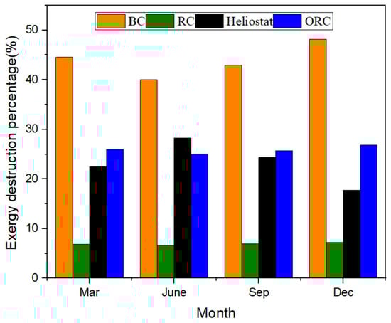 where in and out are the input and output of the component, respectively. The exergy balance of each part that is used to obtain exergy destruction is as follows: