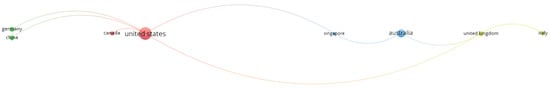 The collaboration network of countries helps determine which nations are leading the research in a particular field. Some countries contribute to a specific research domain more than others. Therefore, an internationally collaborative network of countries was illustrated using the same software, VOS Viewer, to determine the leading publications and their collaborations across nations. The minimum numbers of the documents and citations of a country were both set to 2. This again helped in establishing the optimum legible network. Even though 9 countries out of 20 met this threshold, only 8 were found to be connected. Figure 3 depicts the international collaboration network of the countries with four clusters, nine links, and a total link strength of 10. The size of the node indicates the number of documents published by each country related to SM in DM. The United States, Australia, Germany, China, and the United Kingdom have published a relatively higher number of publications. The variation in publications among active countries is presented in Table 2, along with the number of citations and total link strength. The United States leads the SM in the DM research field, followed by Australia and the United Kingdom. This review is limited to articles published in English. This language limitation may certainly be a factor to this level of dominance by English-speaking countries. In terms of co-authorship, the United Kingdom and Italy emerge as highly collaborative countries in publications. Subsequently, the United States, United Kingdom, Australia, Italy, and Singapore exhibit a significant level of collaboration.