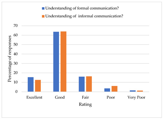 Additionally, Figure 2 presents the self-rating results of the respondents in terms of their level of understanding of the two forms of communication on South African roads. The results show that there is a similar pattern in the trends in the responses to the questions. The majority (64%) of the respondents rated their level of understanding of both types of communication as good, while 16% rated it as fair. These results show that self-ratings are primarily overestimated, and it is worth noting that overestimation of one’s ability can lead to risky behaviours [36,37,38].