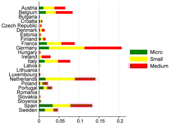 We further classify firms according to their size using the official EU classification into micro, small and medium enterprises. The classification is available at https://single-market-economy.ec.europa.eu/smes/sme-definition_en (accessed on 4 December 2023) and is based on average values of total assets, turnover and employees of each firm observed in the period of analysis. In the main analysis, we consider all the relevant variables as in 2020.