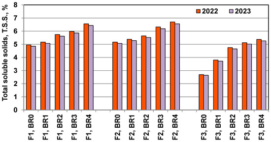 | Irrigation Deficit | Biochar Rate, ton. ha−1 | Vitamin C | Soluble Sugar, mg/g DW | T.S.S., % | |||