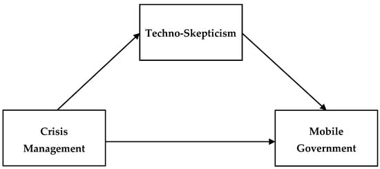 As it attempts to clarify the relationship between crisis management and mobile government usage intention from a techno-skepticism perspective, this study also aims to uncover the moderating effect of techno-skepticism. In this context, Figure 1 illustrates the theoretical research model.