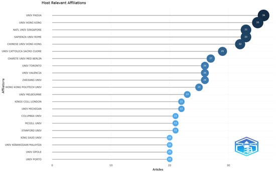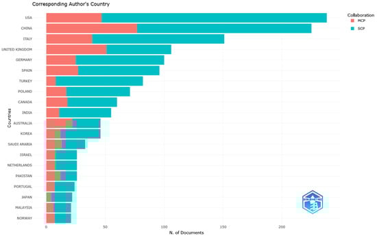 The data suggest a strong collaborative network among authors in this field. This is evidenced by the relatively small number of authors associated with single-authored documents (89) compared to the total number of extracted documents (1932). Furthermore, the substantial number of authors involved in multi-authored documents (8893) relative to single-authored documents (89) underscores the prevalence of collaborative research efforts in this domain. Similar results were also presented in the bibliometric analysis conducted by Pang et al. [82], where authors for single-authored documents were 375 and 4845 authors for multi-authored documents during COVID-19.