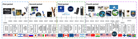 3.2. First Period: Early Development of Small Satellites and CubeSats (1999–2003)