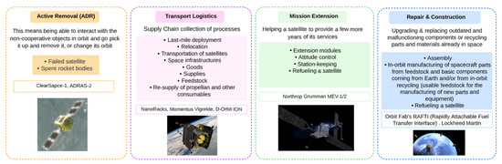- In-orbit Activities: missions aiming to utilize existing satellite capabilities for operations in the space environment;