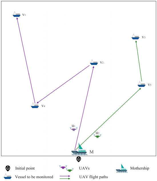 - How to allocate and optimize the UAV monitoring sequence, that is, the collection of vessels monitored by UAVs and the monitoring sequence.