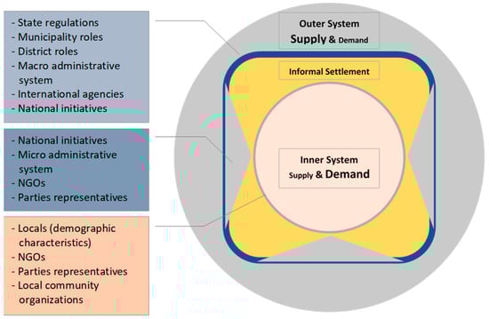 - El Nachar, E.; Abouelmagd, D. The Inter/Transdisciplinary Framework for Urban Governance Intervention in the Egyptian Informal Settlements. Buildings 2023, 13, 265. [Google Scholar] [CrossRef]