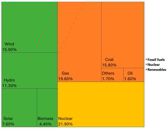 In the European Union (EU), energy production is primarily based on fossil fuels. The share of gas in the total primary energy supply in 2022 amounted to 19.6%. Coal is the second largest energy source, accounting for 15%, and oil accounts for 1.6%. Nuclear energy constituted 21.9% and renewable energy resources 39.4% [1]. As seen in Figure 1, the fact that renewable energies accounted for the highest share of primary energy production in the EU in 2022 is a clear reflection of the EU commitment to reducing greenhouse gas emissions and transitioning to a more sustainable energy future.