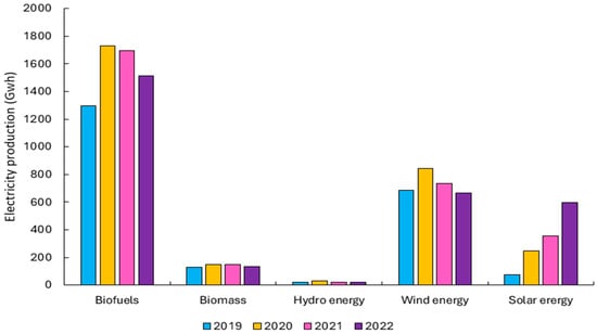 In Baltic countries such as Estonia, the government has set a highly ambitious target to power the entire country with renewable energy sources by 2030. Moreover, the country is currently striving to ensure that 10% of its energy used in transport is derived from renewable sources, with a significant portion of this target expected to be covered through biomethane resources [5]. Electricity generation using renewable energy resources has continued to grow in Estonia. According to the statistics released by the Statistics Estonia Agency (Figure 2), since 2019, the total energy generation using renewable energy resources has continued to increase with a cumulative increase of 33.03% in 4 years [6]. This substantial growth rate places it among the top ten countries that have the largest increase in their share of renewable energy. This esteemed list includes nations such as Sweden, Norway, Denmark, Finland, Ecuador, Uruguay, Panama, and the United Kingdom. The remarkable progress in renewable energy utilization underscores the country’s shift towards sustainable and eco-friendly energy solutions and zero-emission programs [4].