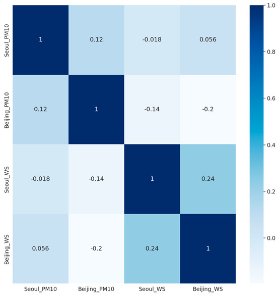 where Seoul_PM10_42 is 42-h delayed particulate matter data in Seoul, Beijing_PM10 is particulate matter in Beijing, Seoul_WS is wind speed in Seoul, and Beijing_WS is wind speed in Beijing.