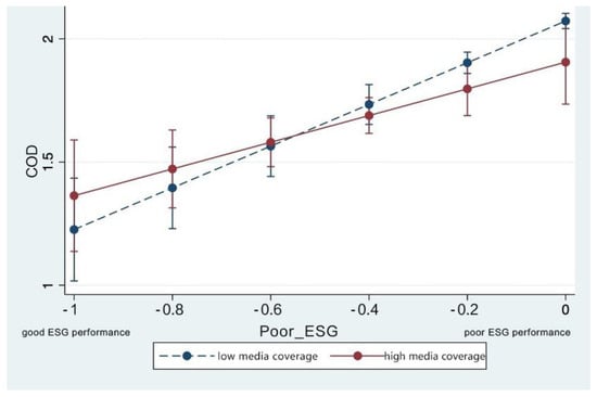 The role of media reports shares common ground with ESG activities in disseminating information to the public [45], capturing investors’ interest [46,47], and monitoring corporate actions [48,49]. The three functions of media improve the information environment, which weakens the influence of ESG performance on the cost of debt.