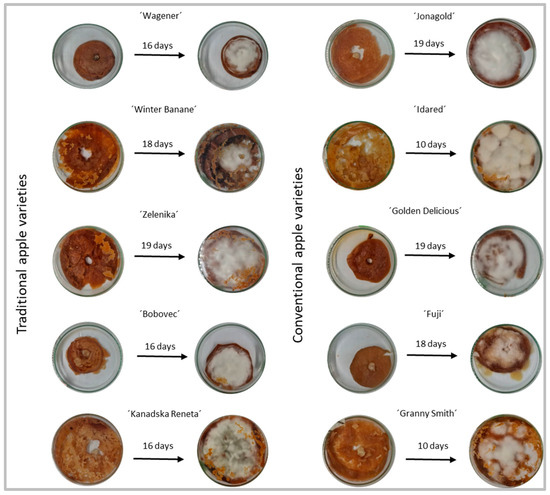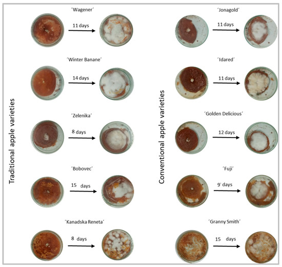 - Lončarić, A.; Kovač, T.; Gotal, A.-M.; Celeiro, M.; Lores, M. Croatian Traditional Apple Varieties: Why Are They More Resistant to Plant Diseases? In Proceedings of the 2nd International Electronic Conference on Foods—“Future Foods and Food Technologies for a Sustainable World”, online, 15–30 October 2021; p. 21. [Google Scholar]