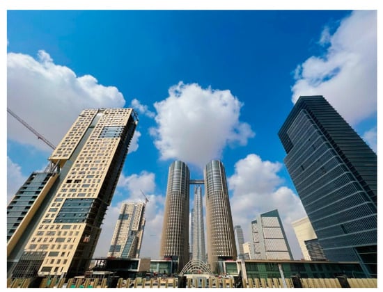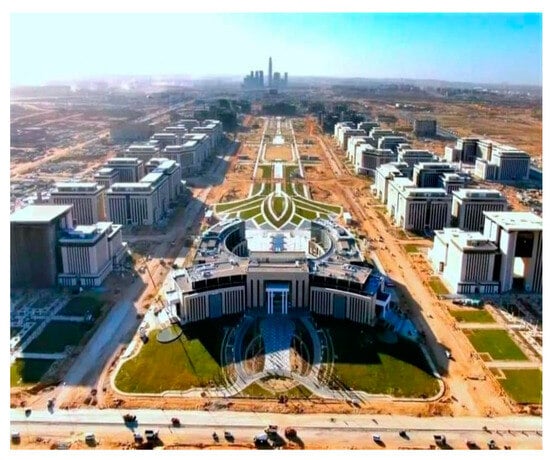 Central Business District (CBD) in the New Administrative Capital of Egypt. Source: “PROJECTS: Egypt’s Arqa Developments launches Phase 2 of I-Business park” https://www.zawya.com/en/projects/projects-egypts-arqa-developments-launches-phase-2-of-i-business-park-akt9j8xn (accessed on 20 August 2021).