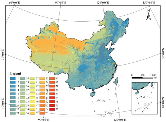 China is located in East Asia (Figure 1), bordered by Russia and Mongolia in the north, the Yellow Sea and the East China Sea in the east, the South China Sea in the south, and India, Nepal, Bhutan, Myanmar, Laos, and Vietnam in the west. The climate ranges from cold temperate to tropical zones, and its climatic characteristics show marked differences in time and space. Complex topographic and geomorphic conditions, coupled with climatic diversity, have combined to produce a rich variety of vegetation types. From north to south, China’s vegetation types include coniferous forests in the cold temperate zone, deciduous broad-leaved forests in the temperate zone, evergreen broad-leaved forests in the subtropical zone, and tropical rainforests in the tropical zone. Additionally, plateau meadows in high-altitude areas, grasslands and deserts in arid regions, swamp vegetation in coastal and lake wetlands, and special ecosystems such as mangroves are all important components of China’s land cover. In recent decades, China has undergone rapid economic growth and urbanization [39], which has triggered drastic alterations in land use and land cover [40]. Ecological and environmental conditions across regions exhibit pronounced variability, with instances of desertification and land degradation emerging in certain areas. These environmental changes not only affect regional ecosystem functions but also may exert prolonged impacts on biodiversity, the global climate system, and the global carbon cycle.